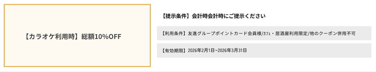 全席禁煙 カラオケ利用時ルーム代金別途 |