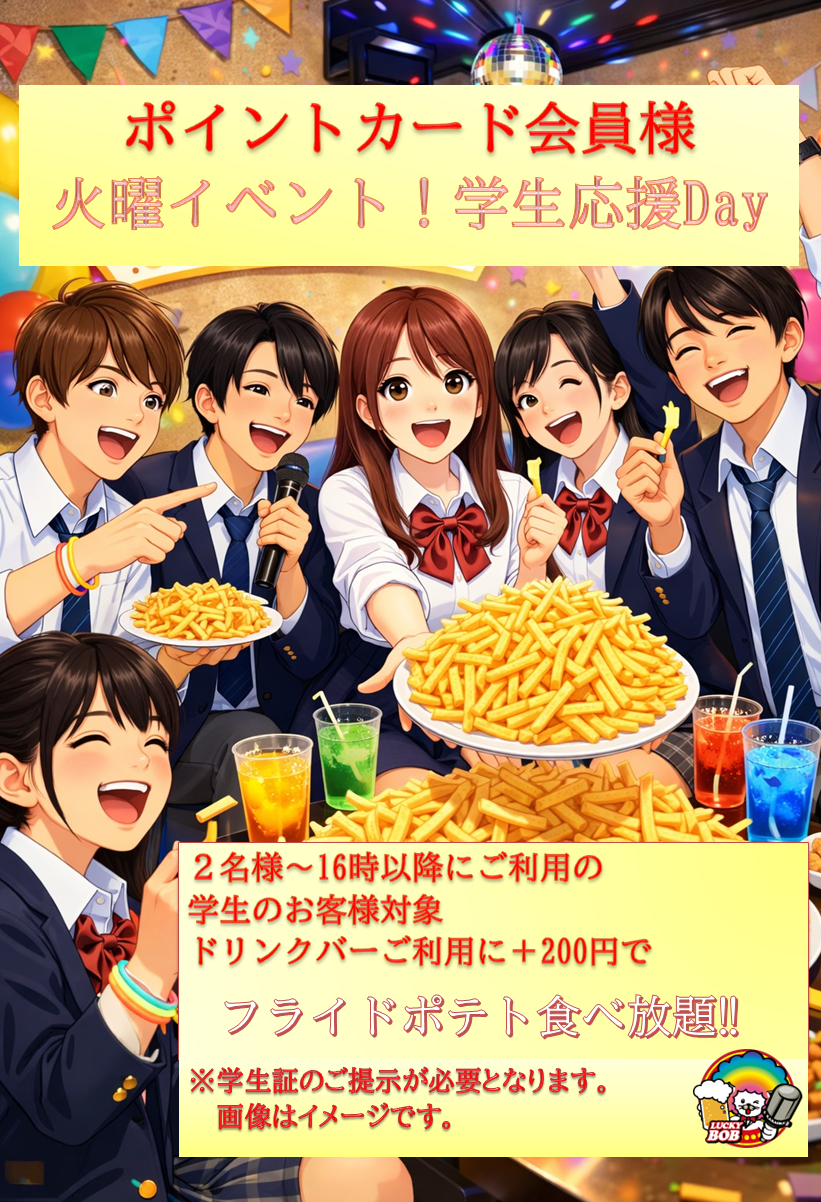 💥毎週火曜イベント《学生応援Day》開催中💥