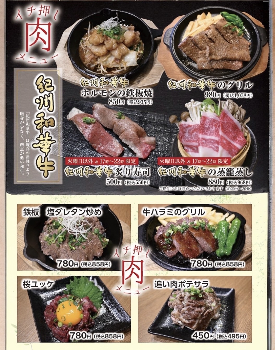 ✔ 紀州和華牛ホルモン鉄板焼✔ 紀州和華牛のグリル✔ 紀州和華牛 炙り寿司✔ 紀州和華牛の蒸籠蒸し